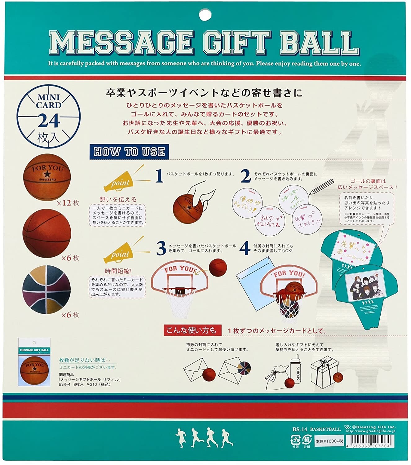3 patterns of mini basketball cards - [For You] basketball x 12, plain basketball x 6, multi-colored basketball x 6 (total 24 mini cards with patterned envelopes)