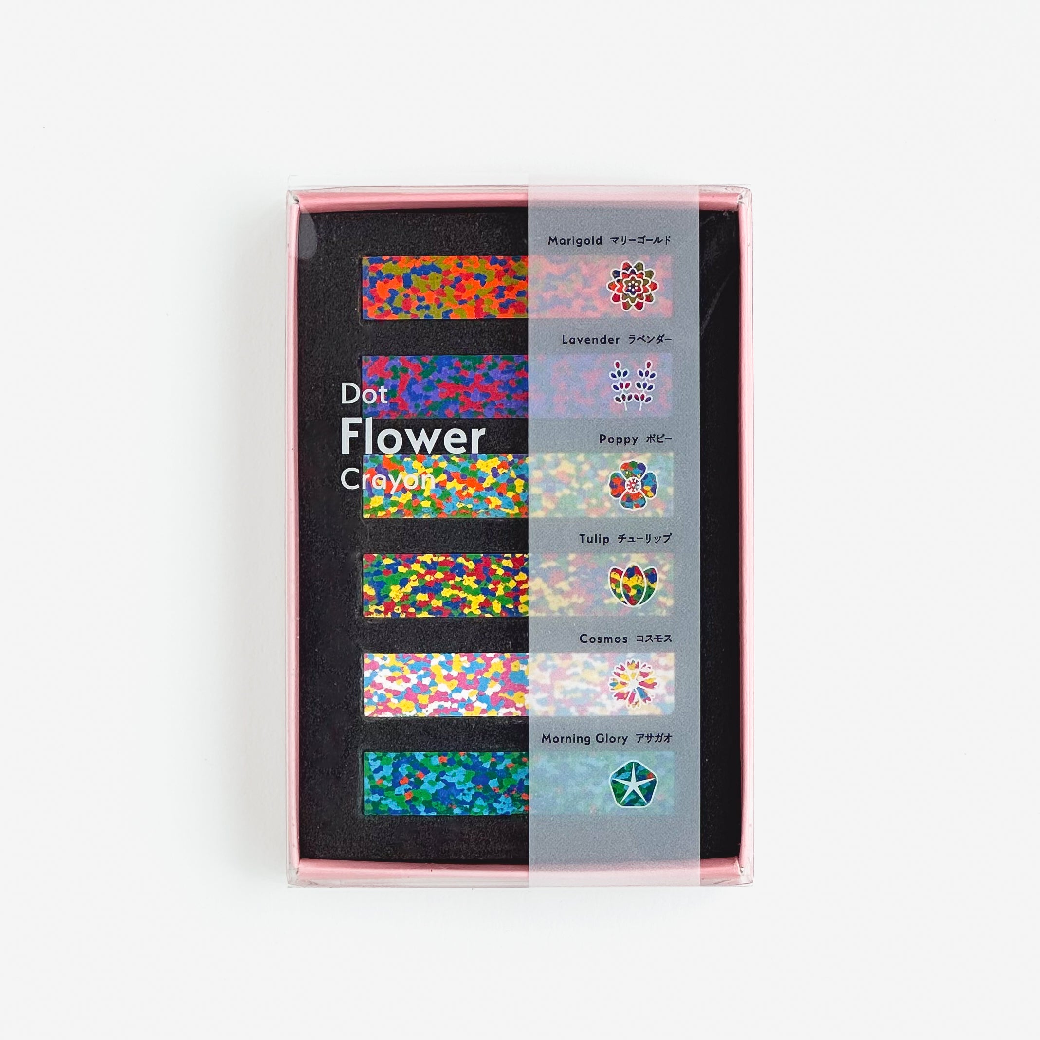 The Dot Flowers Crayon set contains 6 unique crayons that are each comprised of multiple color dots. Each color combination is designed to emulate a specific flower and will add a beautiful touch to any sketch or drawing.