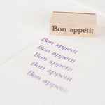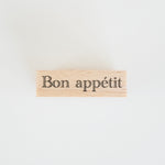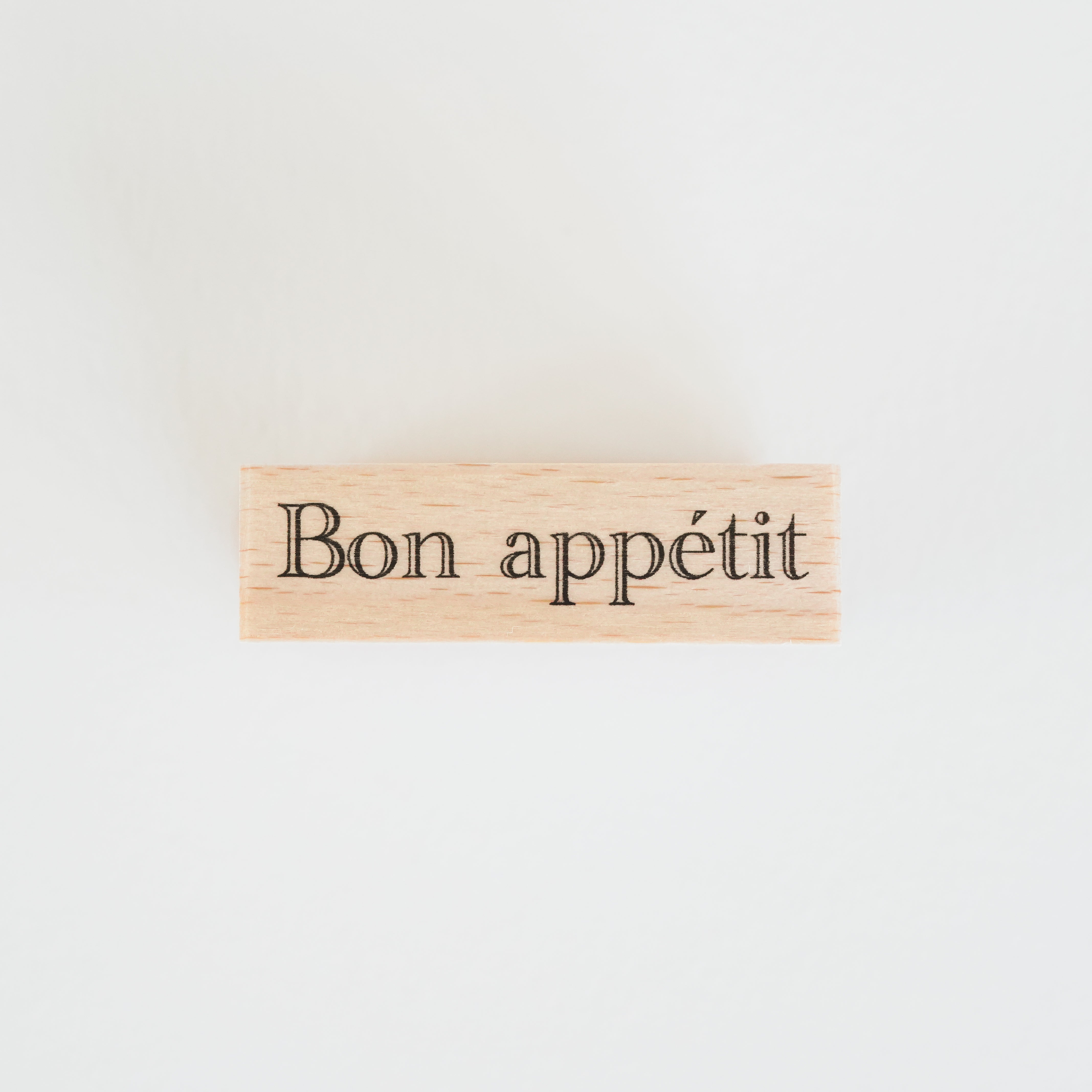 Add a charming touch to your packaging, cards, and culinary-themed projects with this elegant Bon appétit stamp. Crafted from smooth, light-toned wood, this stamp features beautifully engraved serif lettering that gives every impression a refined, classic look. Perfect for bakeries, small businesses, gift wrapping, or anyone who loves adding a personal, French-inspired detail to their creations.