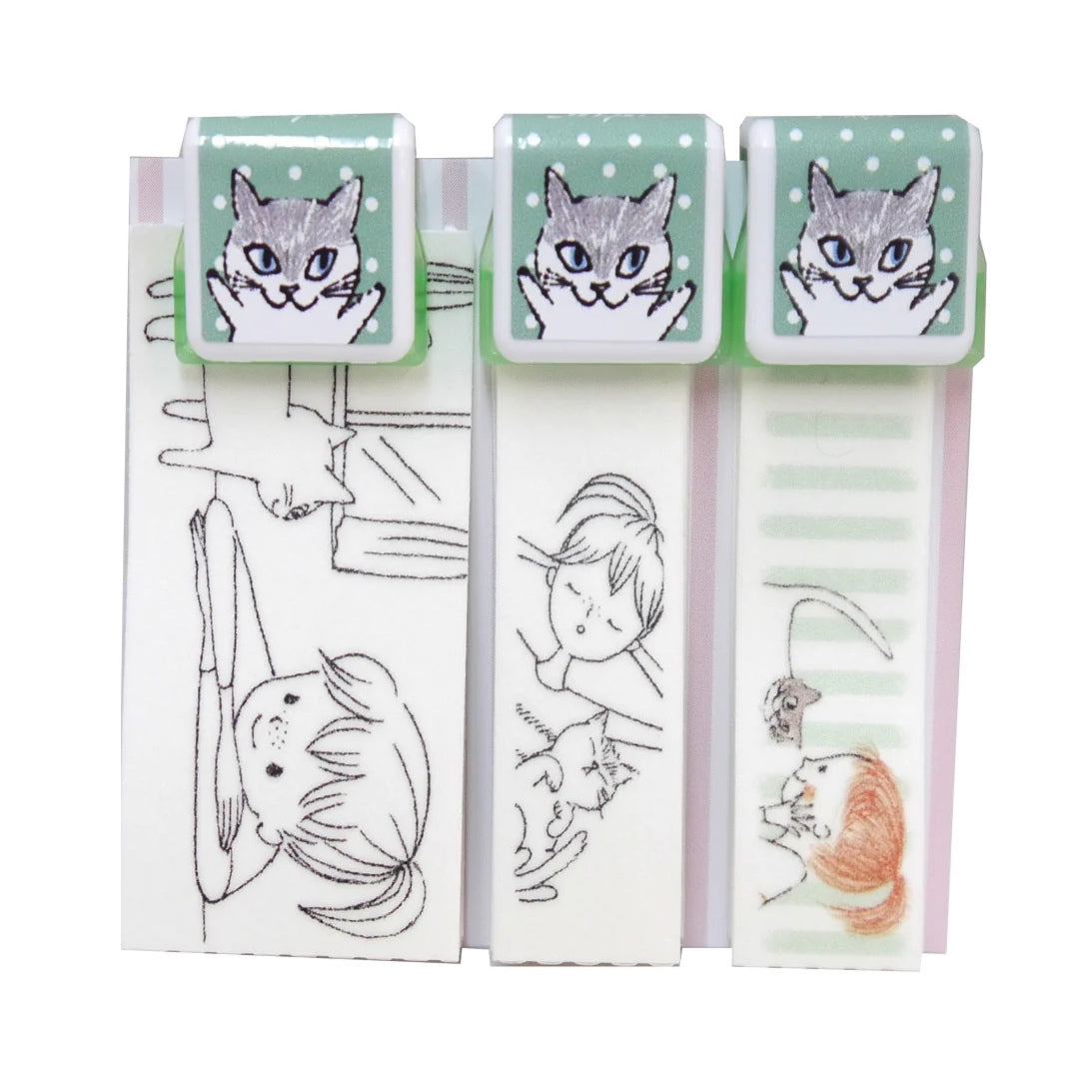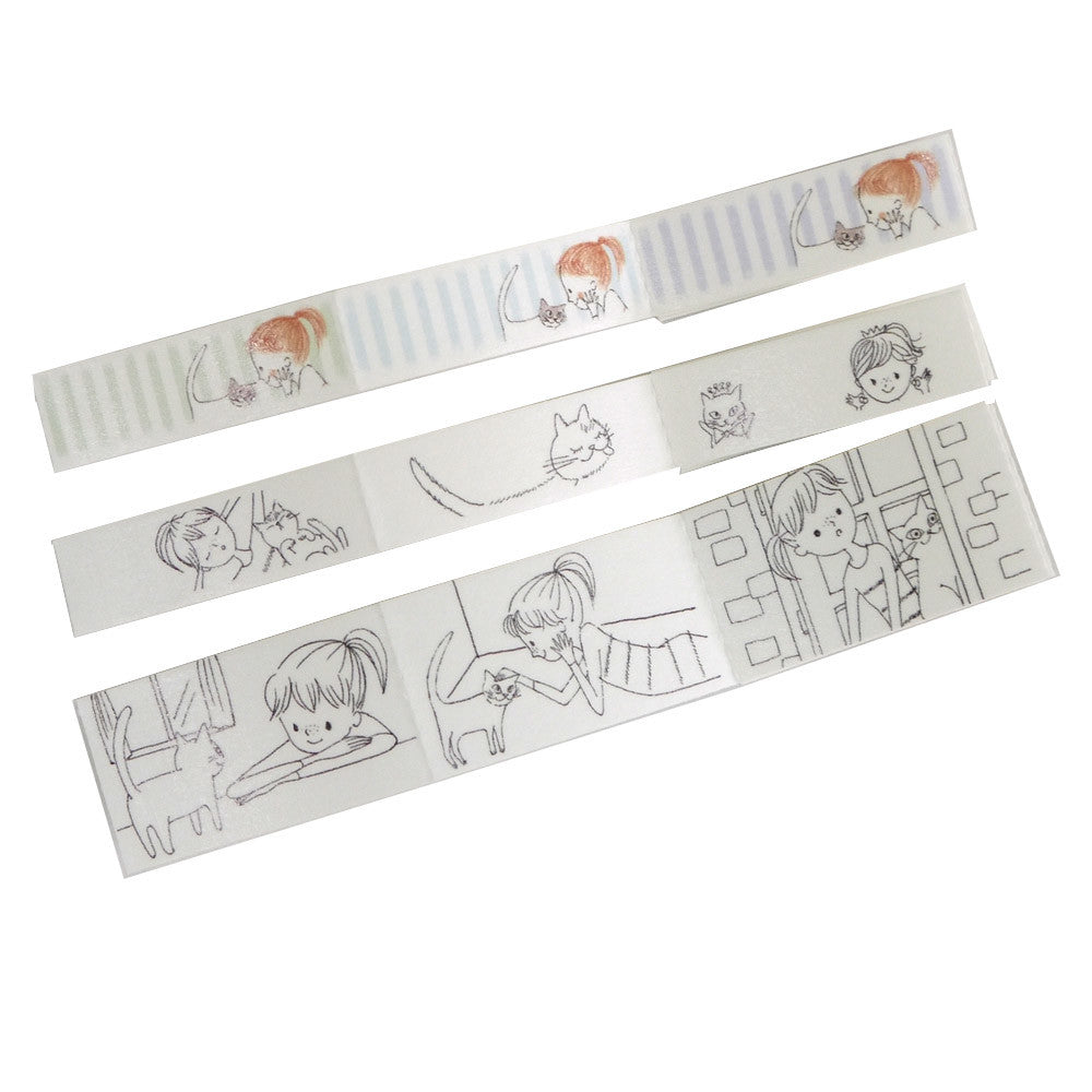 Seal Do Printing Washi Tape with Clips - Girl and Cat Illustrated by Shinzi Katoh
