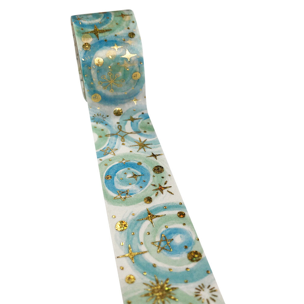 It is a decorative tape with hologram foil stamping and color printing on thin paper.