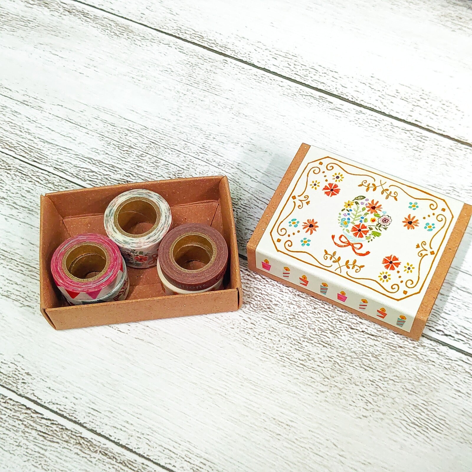 Washi tape sizes: Width 15mm x length 3m (1 roll), Width 10mm x length 3m (2 rolls), Width 5mm x length 3m (2 rolls)