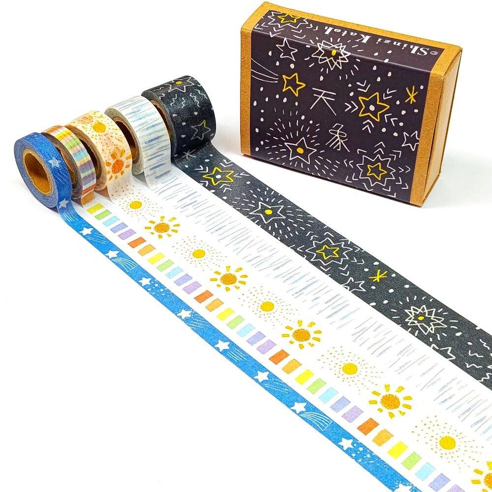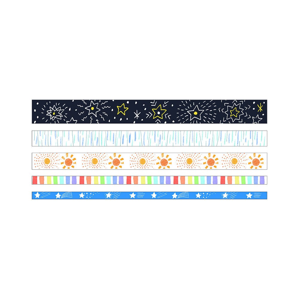Five petite-sized washi tape included