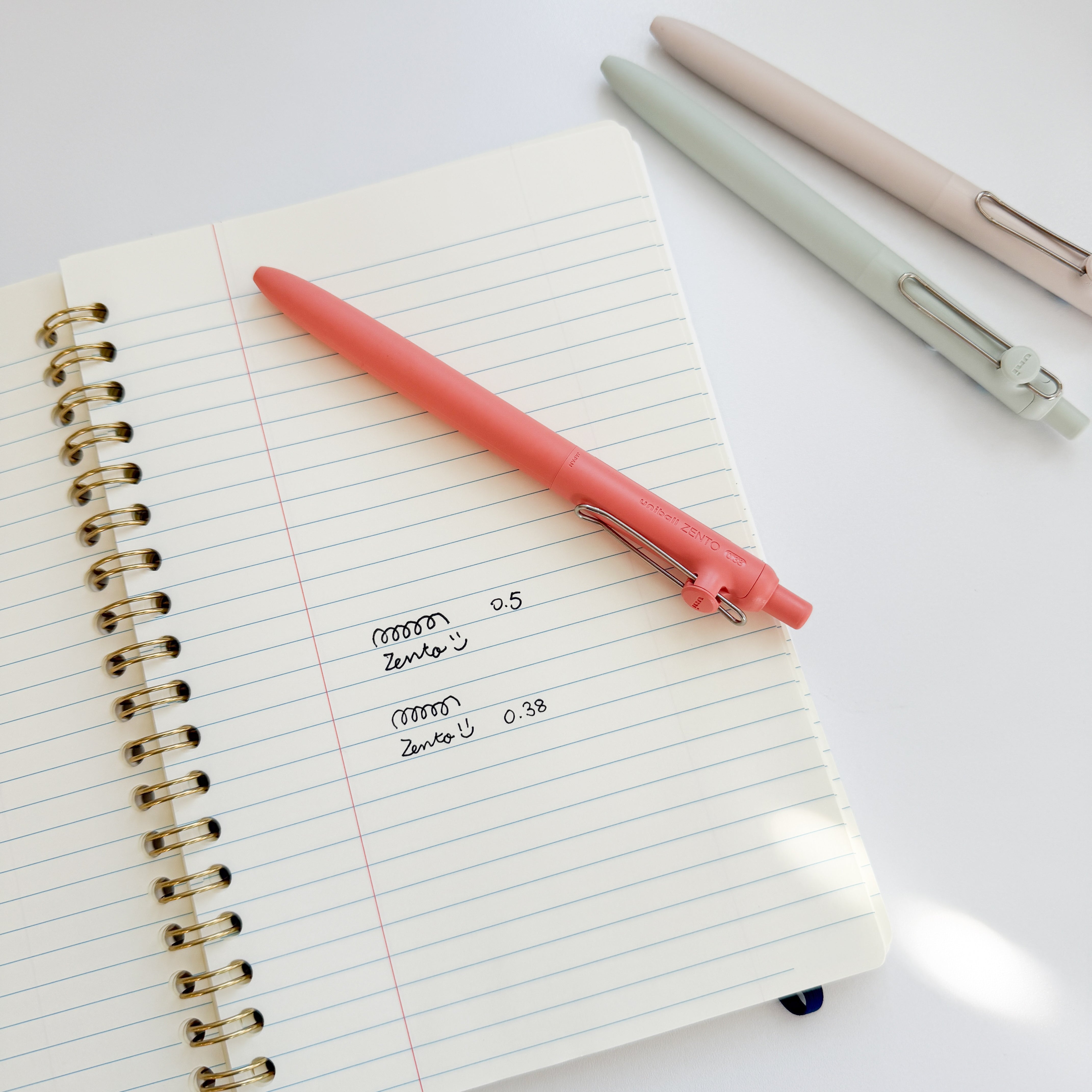Find a moment of calm with the Uni-ball ZENTO. Designed with simplicity in mind, it offers a clean, distraction-free writing experience. The specially developed ZENTO ink glides smoothly across the page, minimizing friction while helping prevent feathering and bleedthrough.